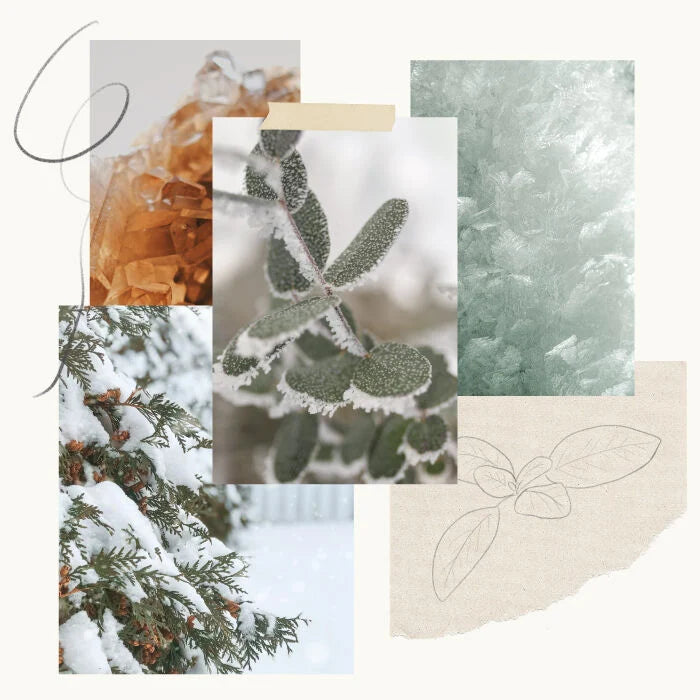Infuse your home with the familiar aroma of frosted mornings over a snowcapped winter forest. Crisp notes of faded sage, frosted eucalyptus, and glistening cypress needles will fill the air while crystal amber and velvet moss radiate warmth and ease the cold, allowing for a moment of tranquility.